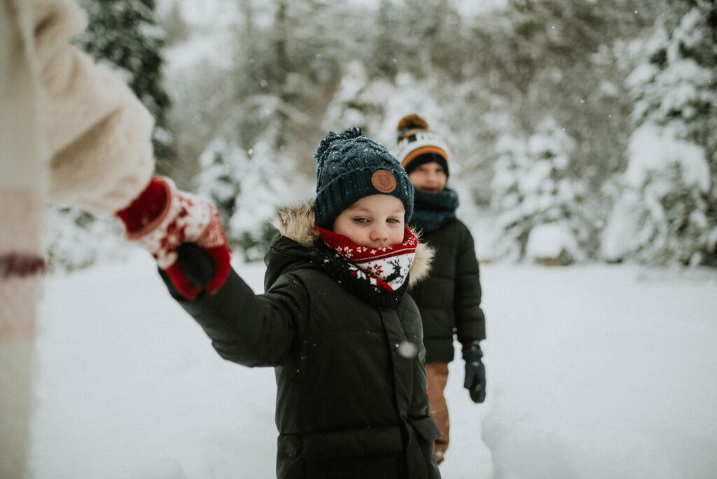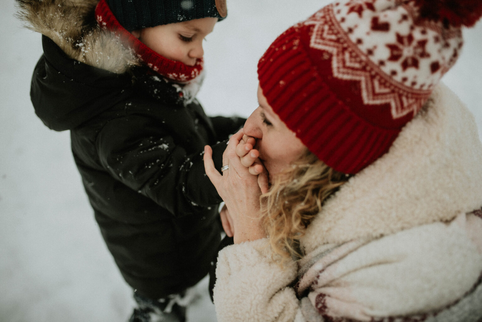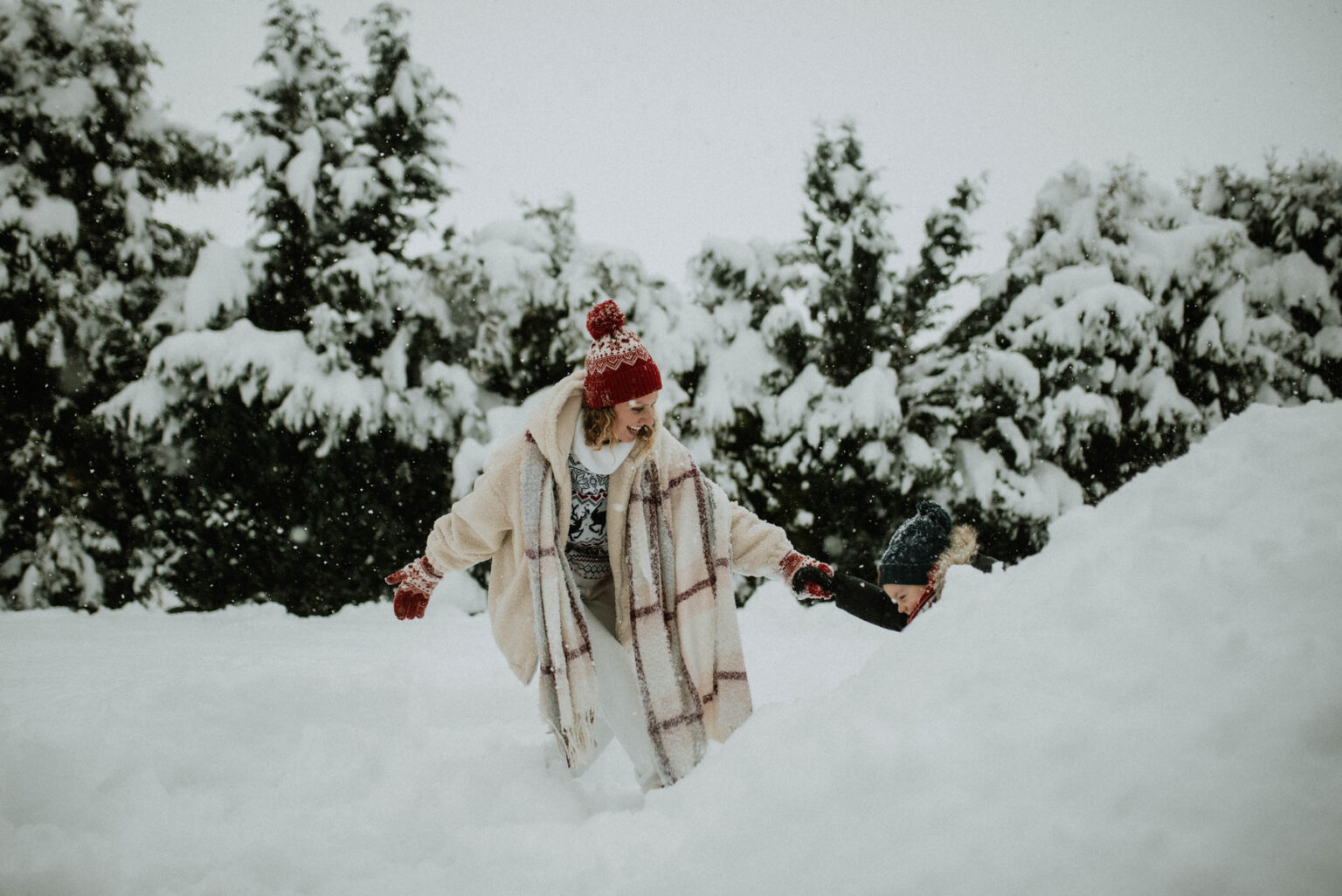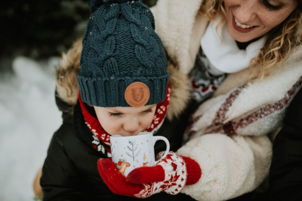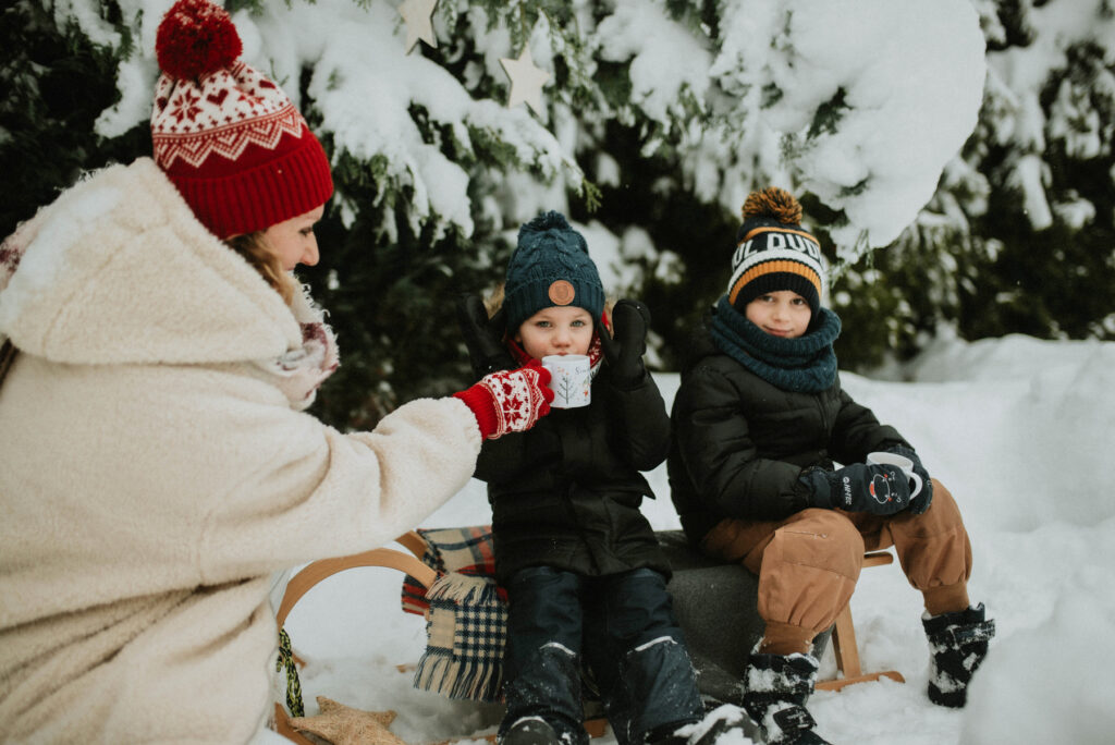 A jak takové focení ve sněhu probíhá? Tak, jako když jdete samy s dětmi ven blbnout, jen doporučím třeba i něco teplého na zahřátí (slouží pak i jako príma dekorace, prostor pro zpomalení, možnost zachycení dětí v klidu s Vámi), beru sáně a tady jsme část pojali i lehce vánočně, na přání maminky a stačilo fakt málo.